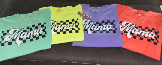 Colorful checkered mama tee