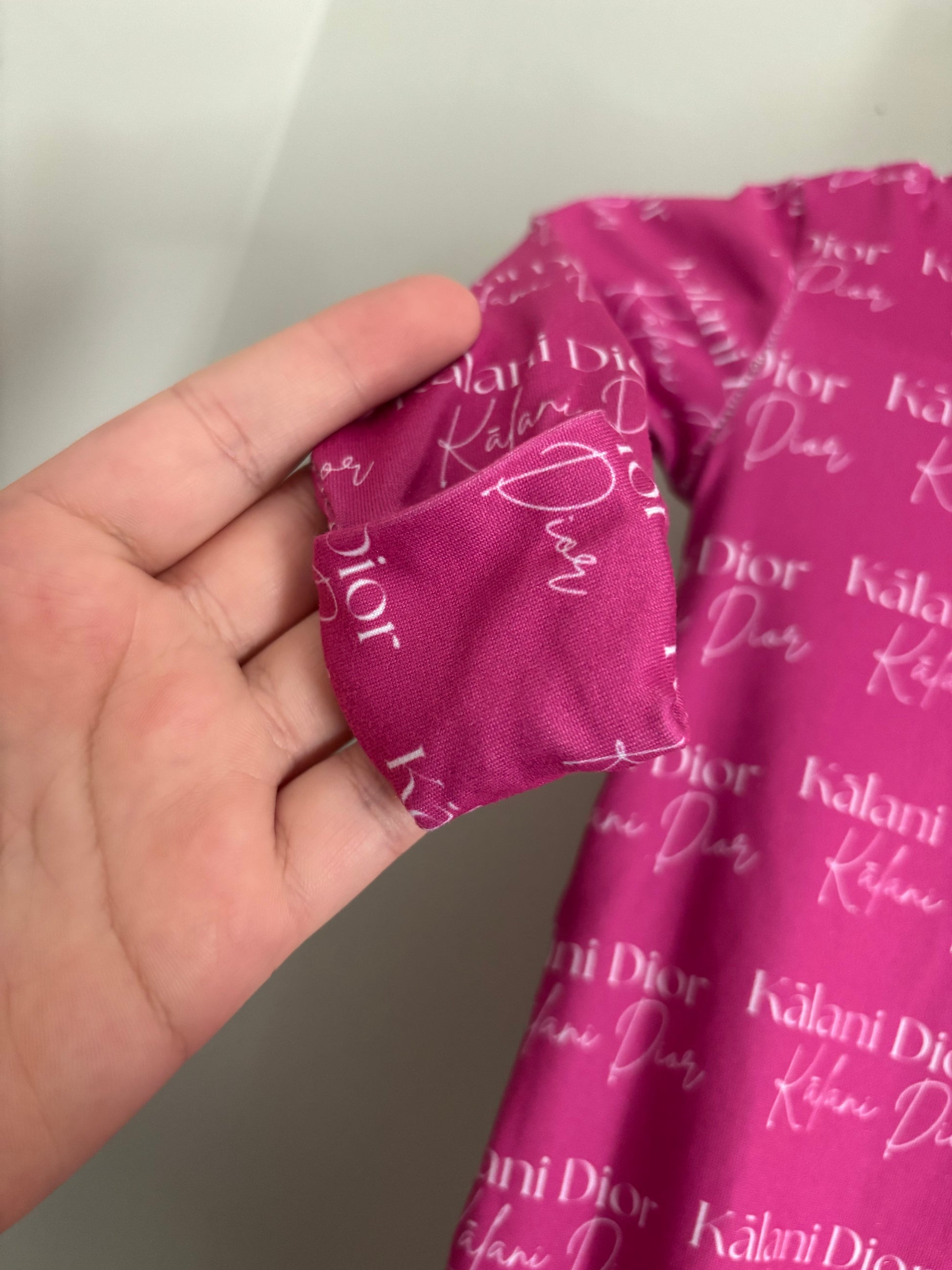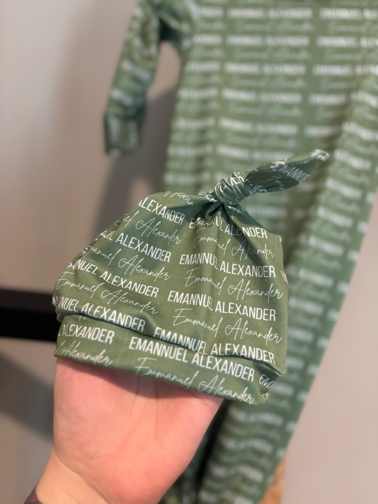 Sewn and cut out by me. Please note that these are very tedious projects so I need a 2 week minimum TAT with a 4 week maximum. They are made with a little extra space so I would stay with true size. No refunds or exchanges. Baby girls comes with a matching head wrap, baby boys comes with matching hat!