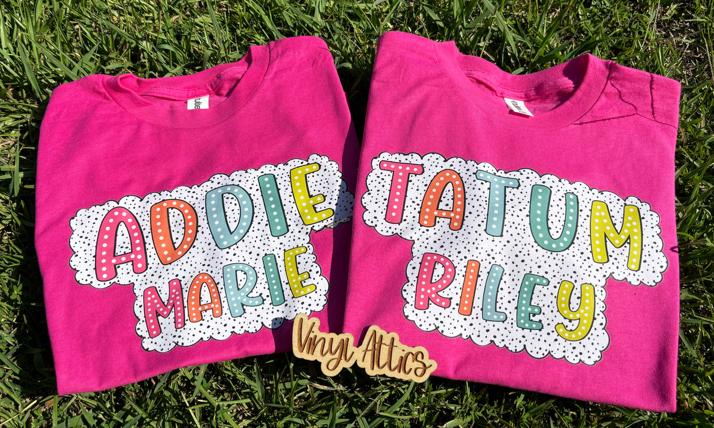 100% cotton t-shirts, DTF professional prints. Super cute way to personalize your child’s wardrobe!