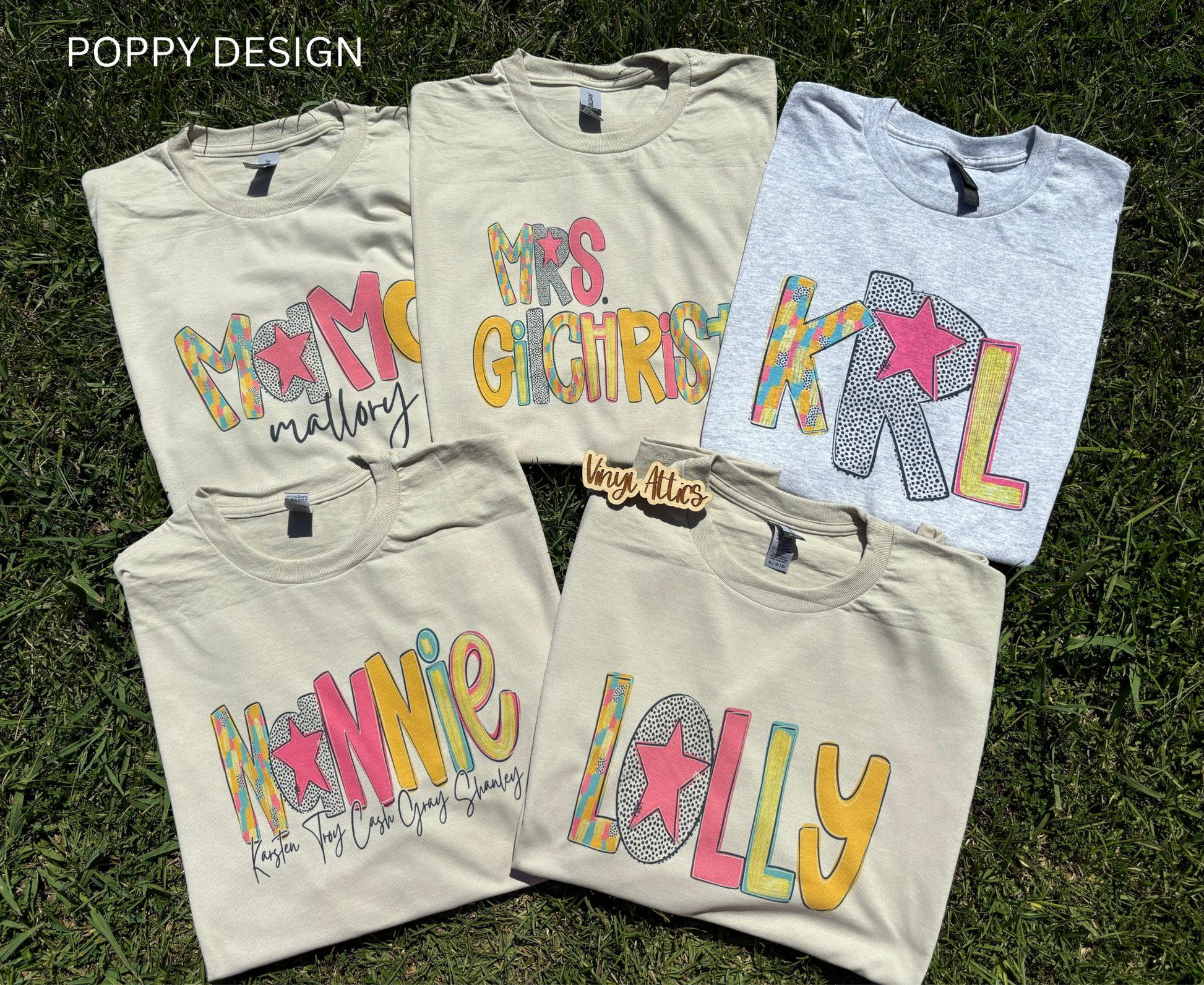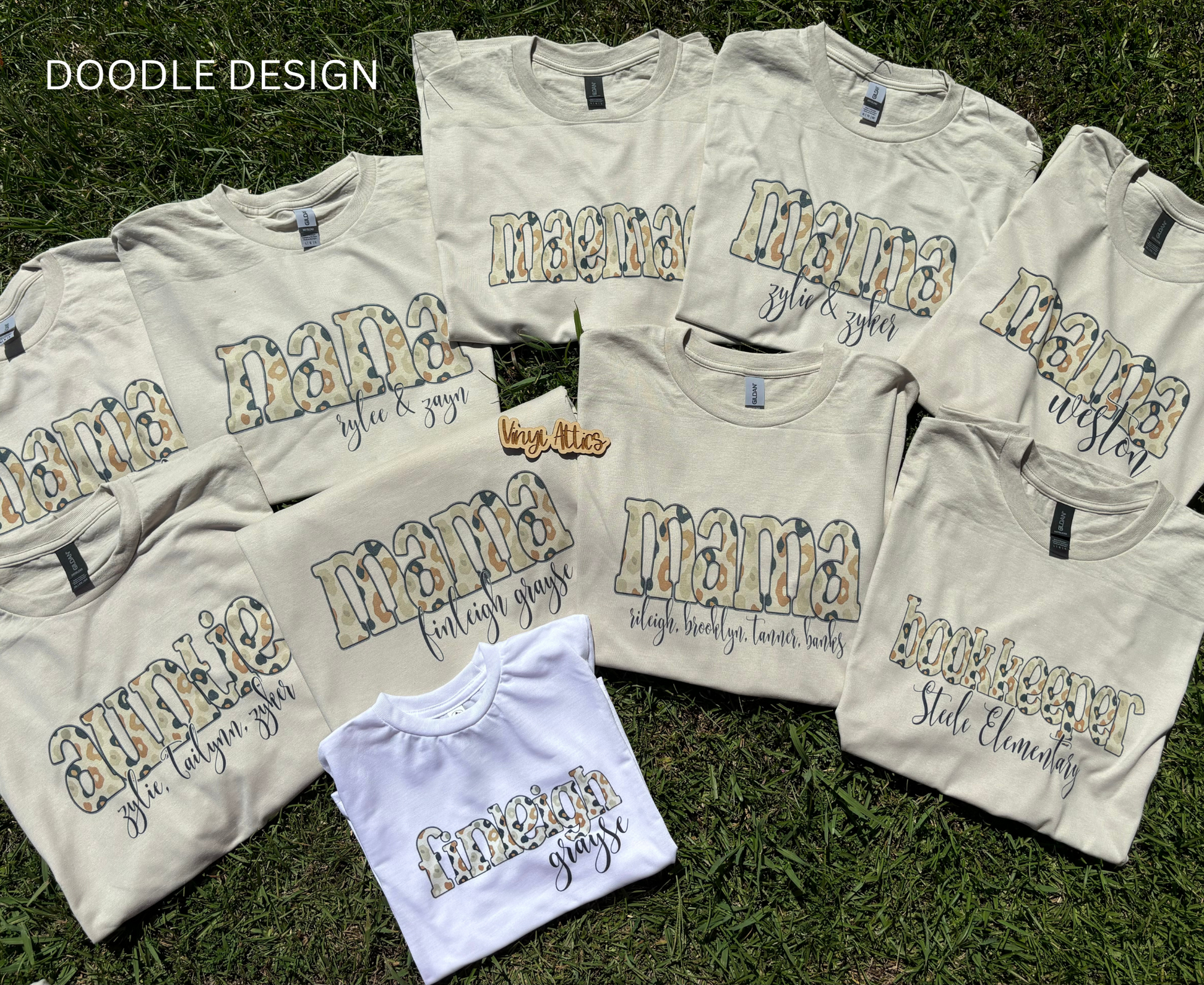 This is a Gildan sweatshirt on a 50/50 polyester/ cotton blend. CUSTOM: Any names Gigi, Mawmaw, auntie, TT, ETC! Please spell all names correctly, what is put in the notes is what will be on the shirt.