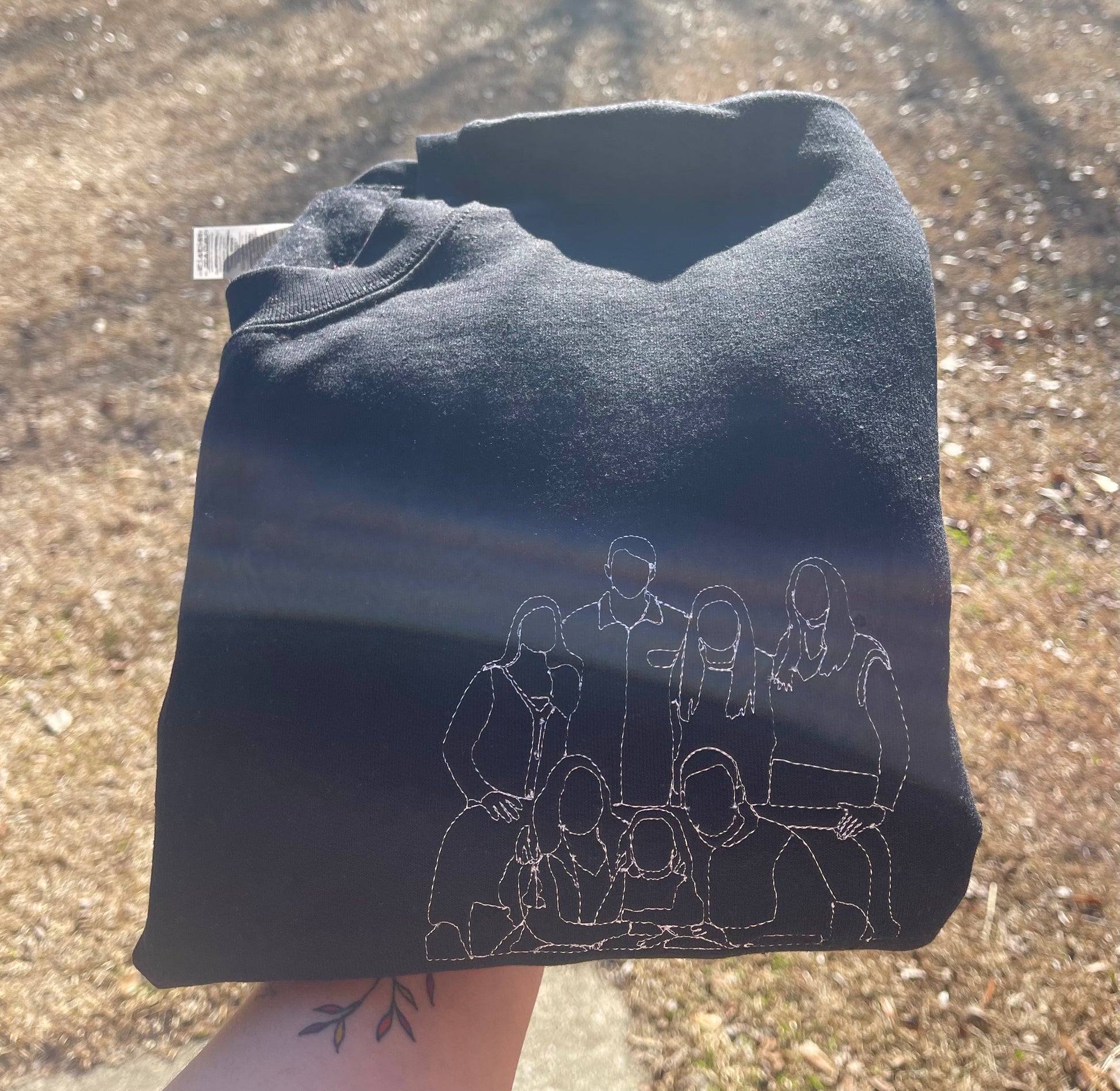 100% cotton embroidered sweatshirt! This is a custom order, please email the picture you would like traced to my email! “Contact.vinylattics@gmail.com”