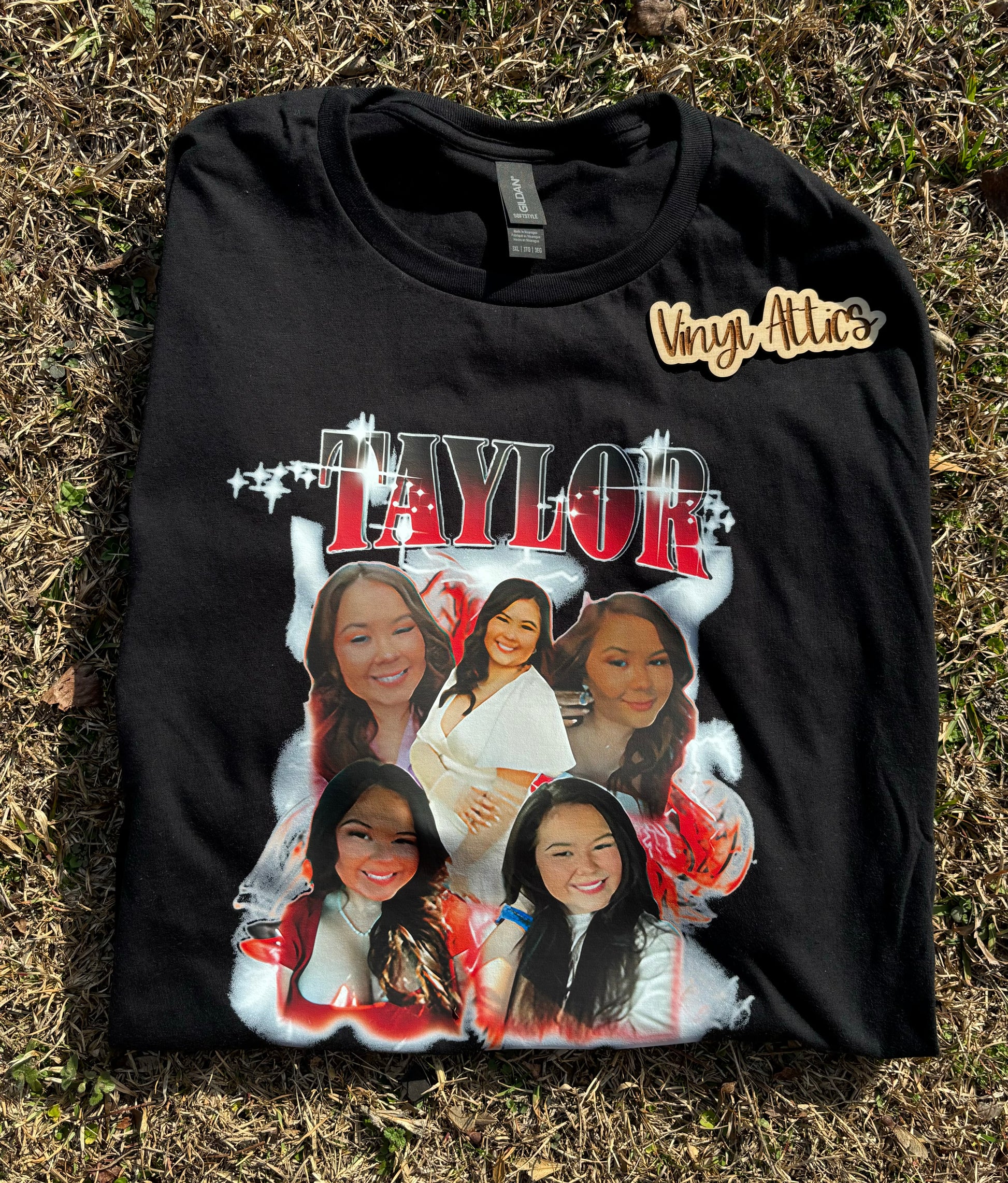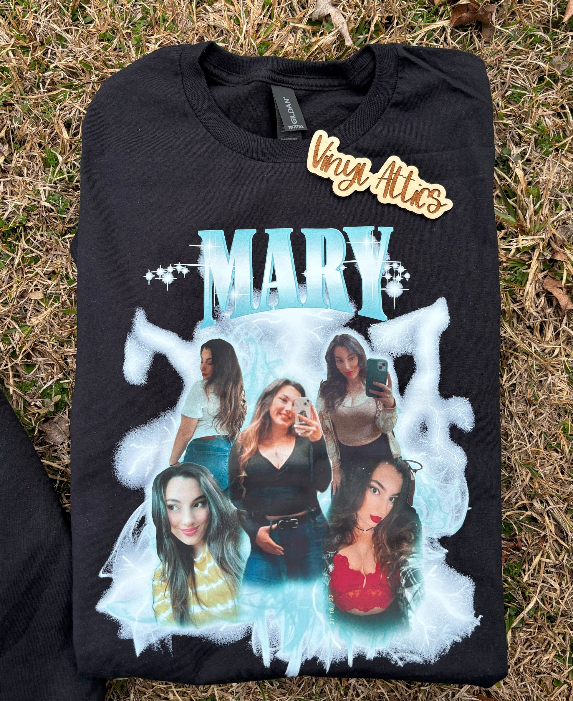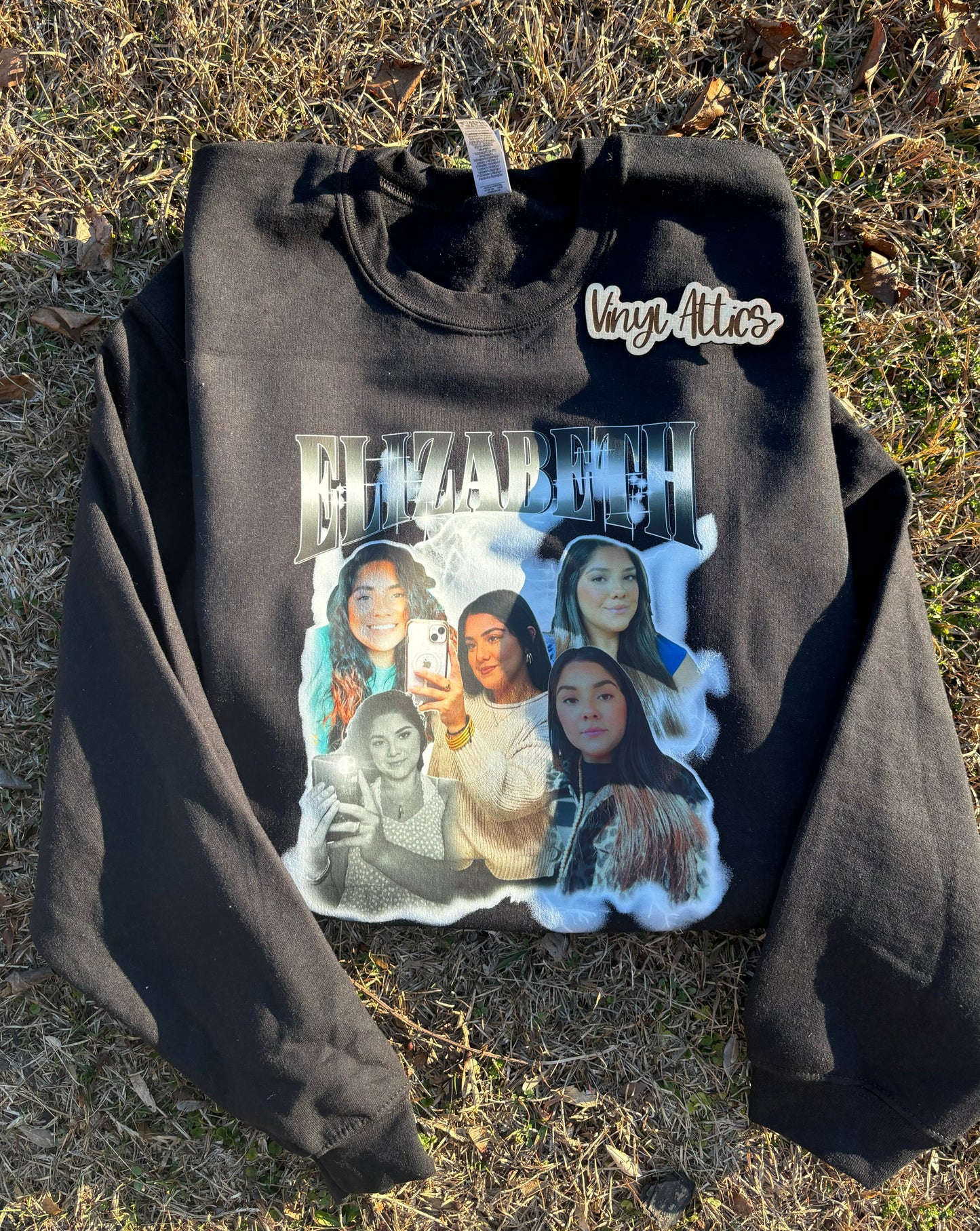 50/50 cotton/ polyester Gildan brand! Please make sure to spell all names correctly before check out. Once it is on the shirt I can not take it off!