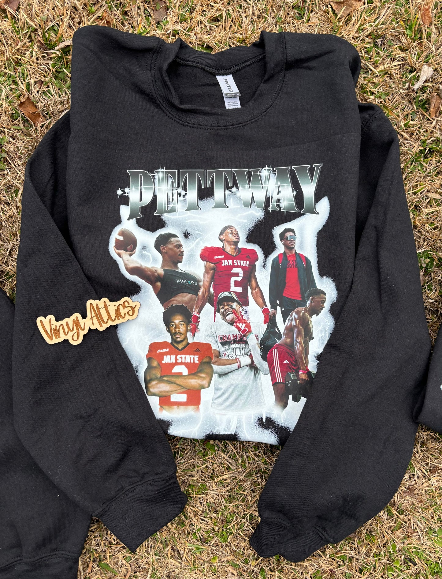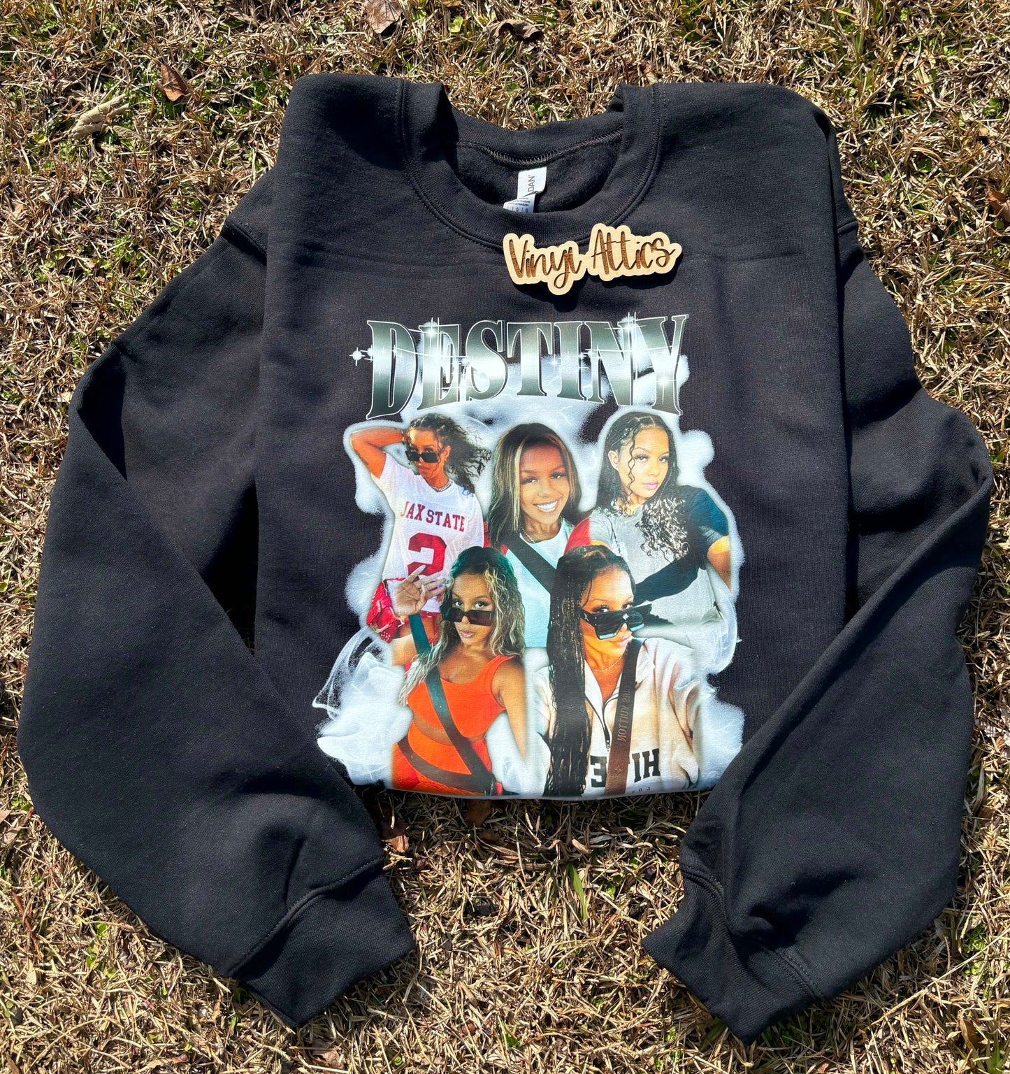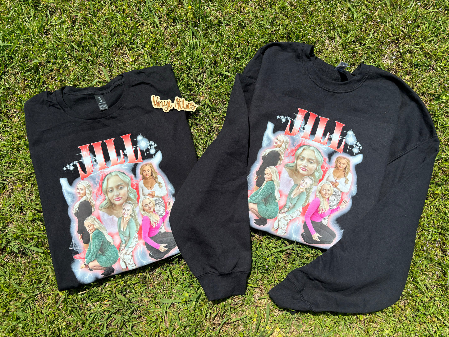 50/50 cotton/ polyester Gildan brand! Please make sure to spell all names correctly before check out. Once it is on the shirt I can not take it off!