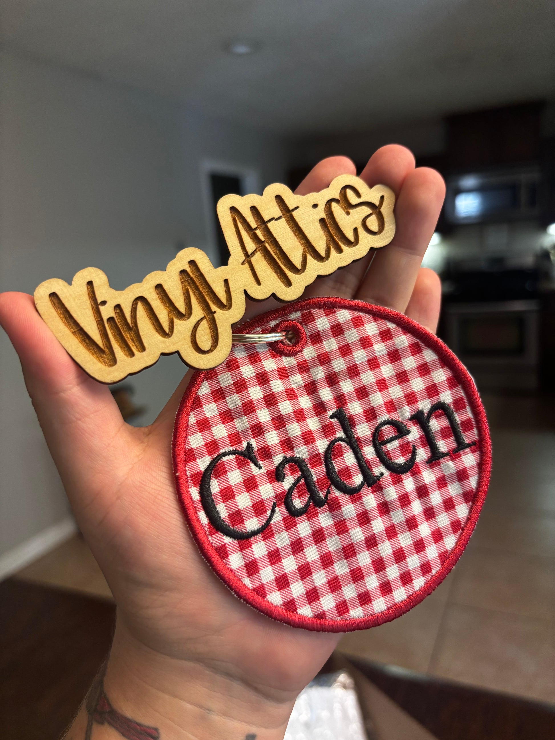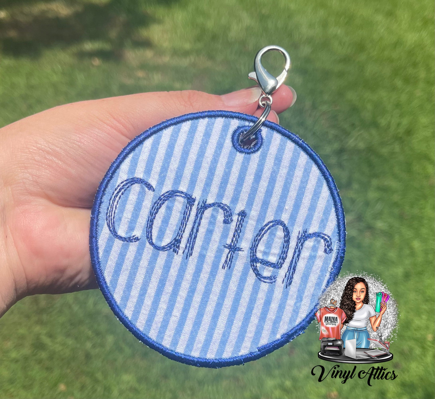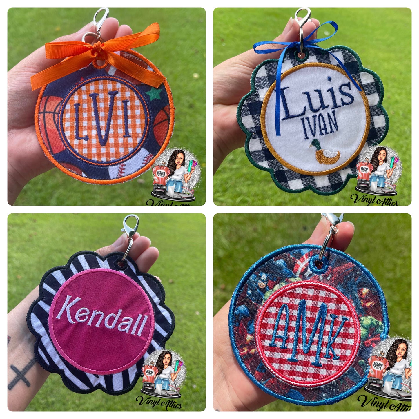 Embroidered bag tag, perfect for back to school. Lunch boxes, back packs, etc! Please spell all names correctly once it’s embroidered I’m not able to redo if there is a typo.