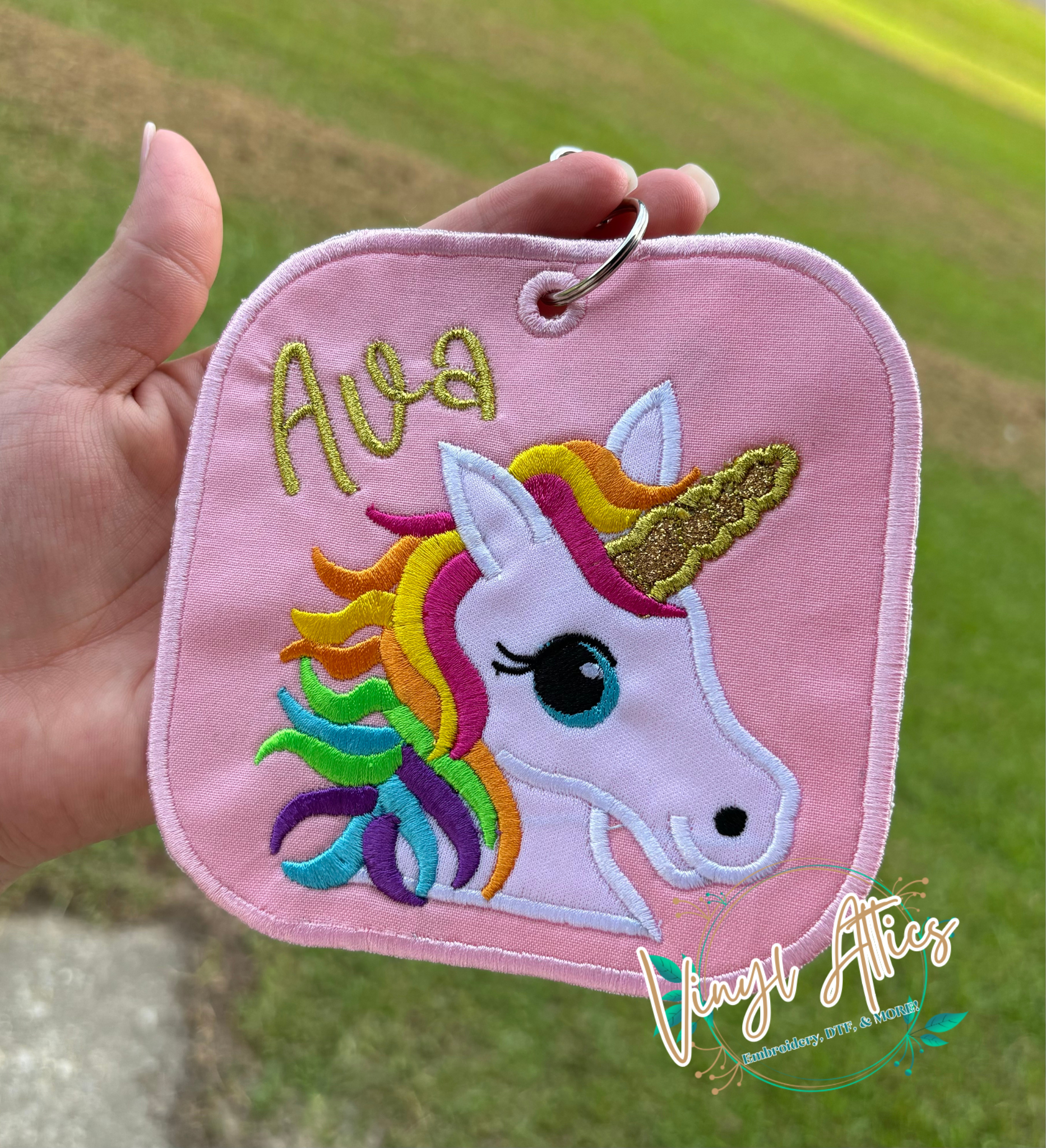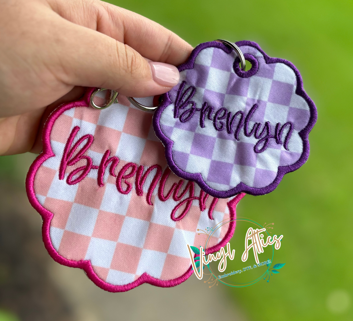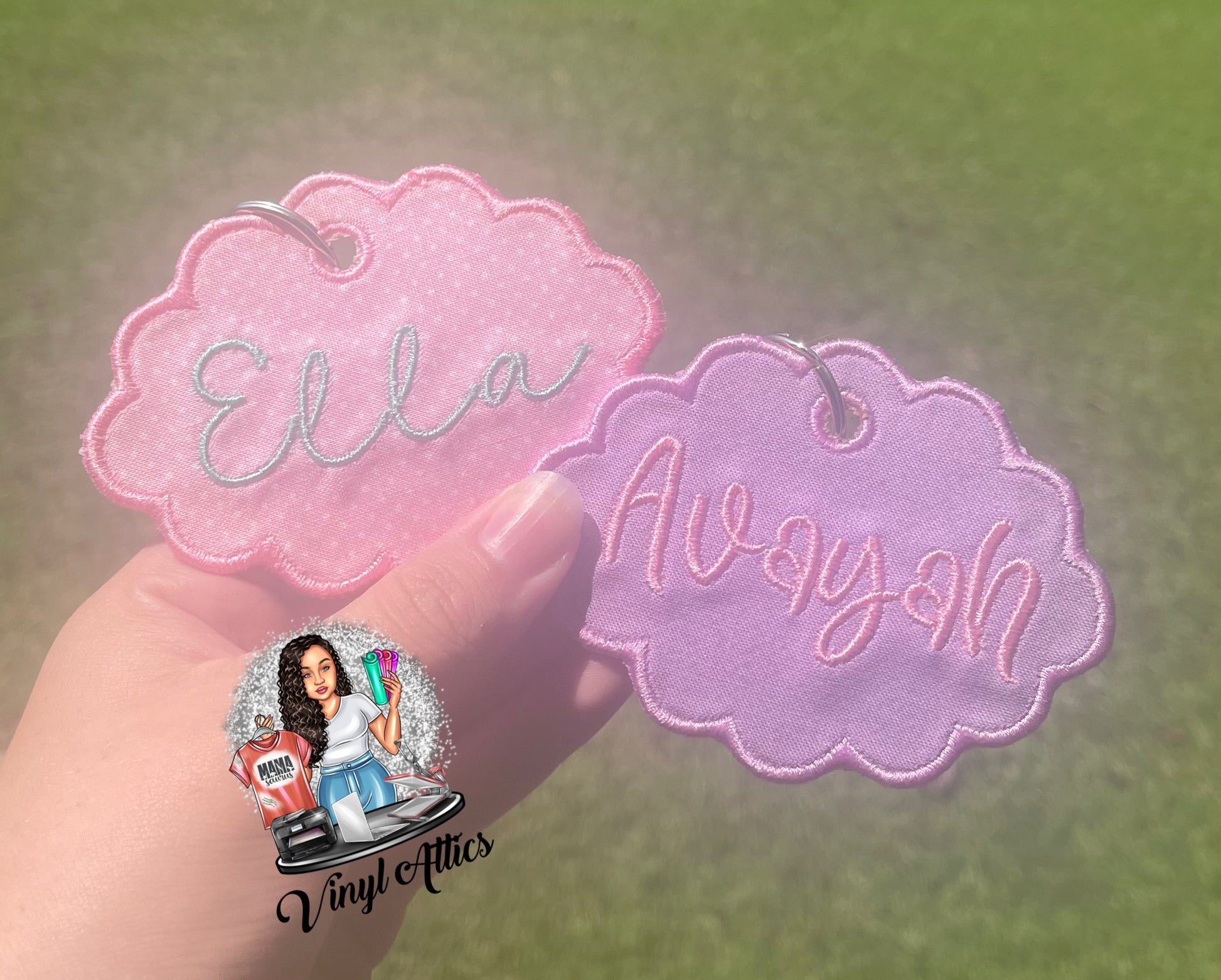 Embroidered bag tag, perfect for back to school. Lunch boxes, back packs, etc! Please spell all names correctly once it’s embroidered I’m not able to redo if there is a typo.