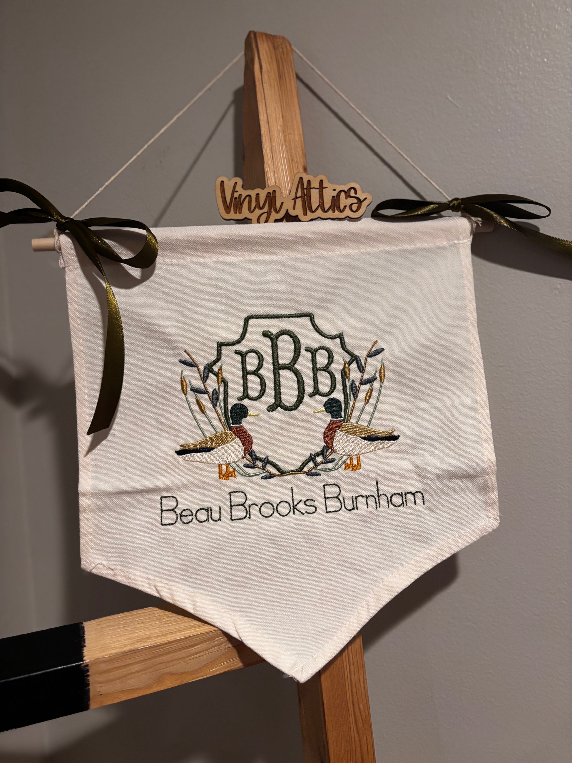 Embroidered announcement banners. I accept customs if you don’t want any of the designs I have listed.