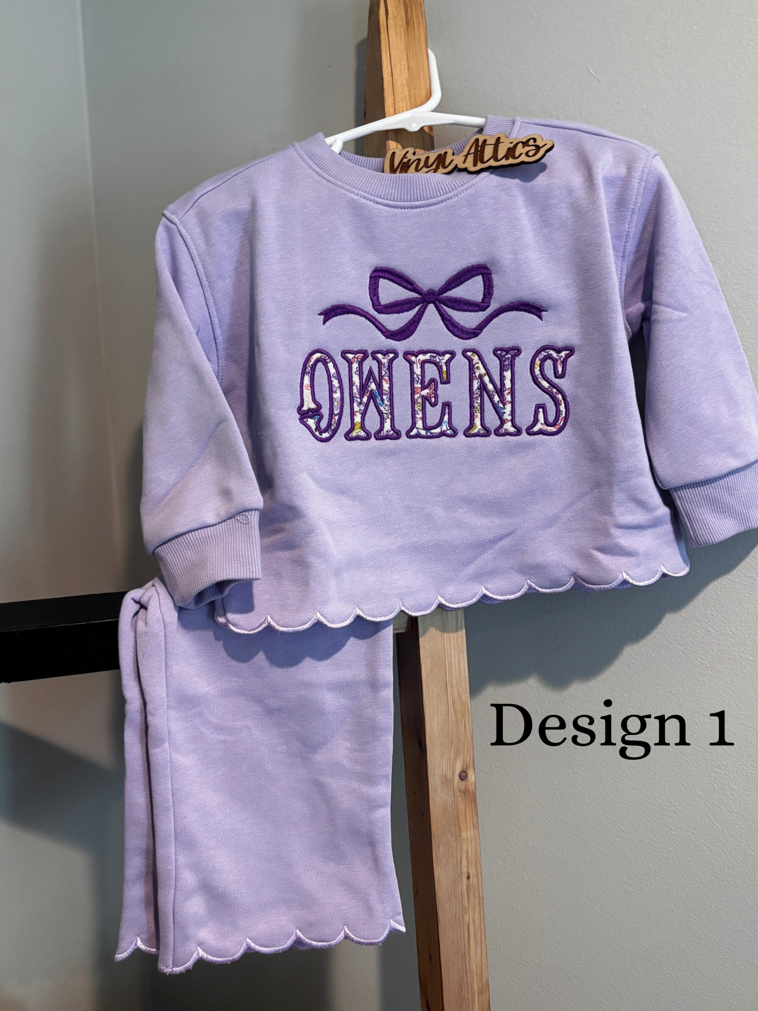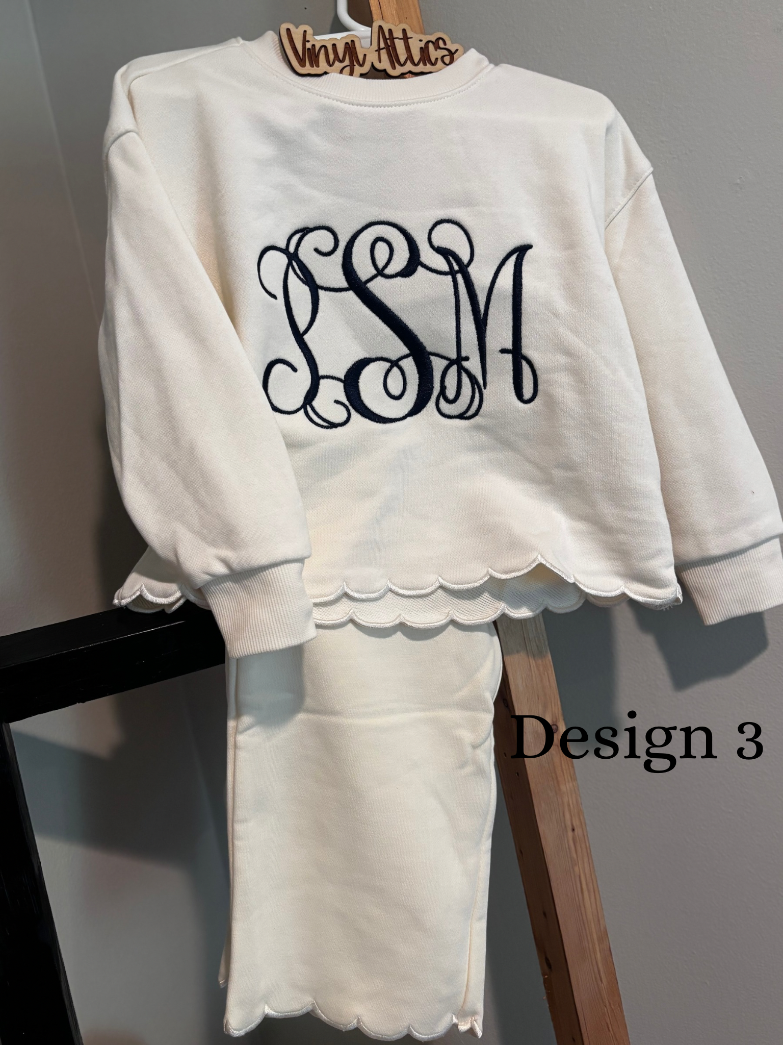 100% cotton sweatsuit set. Your choice of deisgn! The top runs boxy/ oversized but the bottoms seem to run true to size.